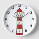 Red and white lighthouse watchtower wall clock. Nautical design home decor.