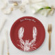 Add your own message to create custom party supplies for your special event. These paper plates feature an illustration of a lobster in white against a dark red background. They're ready to be personalised with your own text in white script or cursive writing.