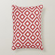 This stylish red and white geometric pattern accent pillow features an original ornamental design. White meanders angle around red diamonds containing white diamonds. Red zigzags provide subtle separation between the winding paths.