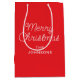 Red and White Merry Christmas Monoline Script Medium Gift Bag