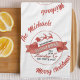 Create your own Merry Christmas kitchen towel featuring festive red and white colours with a charming Santa Claus and reindeer sleigh rides design. This personalised towel, adorned with elegant script typography and calligraphy, is perfect for adding a touch of holiday cheer to your kitchen. Whether you're celebrating family traditions or looking for unique memory gifts, this towel makes a thoughtful chef or baker gift idea that will be cherished for years to come.
