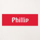 A red and white yoga mat, this modern design features a red background with your name written in white trendy text. Great for a workout, order yours today!