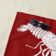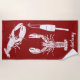 This beach towel features a nautical collage with illustrations of lobsters and a vintage wooden fishing buoy in white against a dark red background. It's ready to be personalised with a name in white script or cursive writing. If you would prefer a different background colour select the option to customise further.