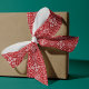Festive and wintry holiday patterned ribbon features an intricate Nordic style sweater pattern in white and vibrant red.