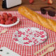 Red and white paper flowers plate