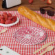 Red and white patchwork rustic Paper Plate