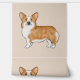Destei's original cartoon illustration of a red and white coat colour Pembroke Welsh Corgi breed dog. The background colour is beige, but it can be changed to any other colour as well, if so wished.