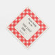 A retro restaurant red and white plaid pattern of checks and stripes in editable script and block letters for your name or event title and room for more information.