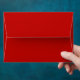 Beautiful red and white poinsettia flowers cover the inside of this Christmas envelope, with a bright red exterior.