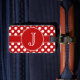 Red and white polka-dot pattern with a matching stripe and round medallion for you to personalise with your monogrammed initial. Add your information or custom text on the back of the luggage tag.