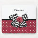 Get girly with this cute red and white polka dot pattern mousepad with a trendy black and white chevron bow and a chic red ribbon rose. Personalize this red and black retro meets modern design by adding the name of your teen girl. Flat printed image, NOT actual rosette ribbon and bow.