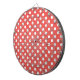 This item features an attractive design of white polka dots on top of a red background. It would make an ideal gift for yourself or others!