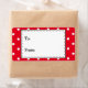 Red and white polka dot pattern background. A white rectangle with a text template reading To... From... in black lettering.