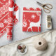 Red and White Reindeer Floral Modern Christmas Wrapping Paper