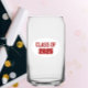 Trendy can glass for the school grad that features school colours of red and white, with class year printed in bold, red lettering on a white oval background. Great for graduation and class reunion parties. Edit class year with your own as desired.