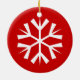 This red ornament features a bright white snowflake on each side. Add text to this customisable ornament for that personal touch.