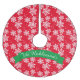 Red and White Snowflake Pattern with Family Name Brushed Polyester Tree Skirt