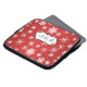 This festive red and white snowflakes laptop sleeve has a text box for you to customise with your own name, initials, business name, or other text. If you need any help customising, please email niteowlstudio@gmail.com.