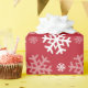 Wrapping paper featuring a white snowflakes pattern on a red background. Perfect for the holidays.