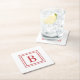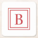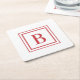Red And White Square Border Monogram Paper Coaster