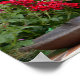 Red and White Squirrel with Red Flower Bush Poster