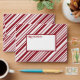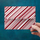 A red and white candy cane stripe on the exterior of the envelope. The front contains white space to add the address of your recipient. A box on the front of the card contains the message: Kindly Deliver To. You can then add the recipients address. Send joy while delighting your recipients with these bright and colourful envelopes that will stand out in a crowded mailbox. They match two of the holiday cards available in my store.