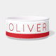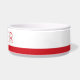 Red striped custom personalised pet bowl for your dog or cat's food or water with a modern font and space to type in your pet's name. Click 'customise further' to change the stripe colour or font.