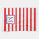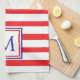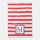 Red and White Stripe With Navy Blue Monogram Tea Towel