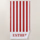 Red and White Striped Personalised Cabana Beach Towel. Personalise with your own name. Can provide in any colour.