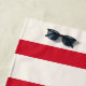 Red and white striped beach towel for a cute, modern and elegant nautical bathroom.