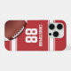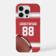 Ideal for the American football fan, grid iron player or football coach, a sports jersey style design in red with white stripes and customisable text for their name and number. A football is also featured as part of the design. Made in part from graphic licensed and © Graphics Factory.com
