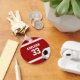 Red and White Stripes Jersey Soccer Ball Key Ring