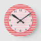 Red and White Stripes Pattern Round Clock