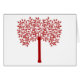 These items are adorned with a stylised image of a leafy tree in a red and white colour scheme. Click "customise it" if you would like to change the background colour on the cards, buttons or magnets.