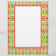 Bright and cheerful astral patterned stationery featuring lime green, red and yellow with text box.