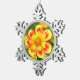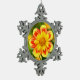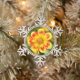 Red and yellow dahlia flower snowflake pewter christmas ornament