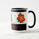 Designer black coffee mug, with red flowered print. The text can be personalised to your own inspirational message, or text is removable. Beautiful personalised custom gift idea.