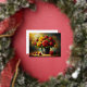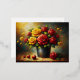 Red and yellow roses in a pot foil holiday postcard