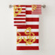 Red And Yellow Sailing Anchor Beach Themed bathroom towels from Ricaso - designed as a set of 3 but you can buy individually if you wish - designed with a yellow anchor with rope featured on a red and white striped background