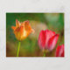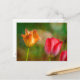 Red and yellow tulips on textured background postcard