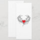 Artistically painted red heart with angel wings grey, decorated with black smooth contour.