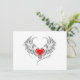 Artistically painted red heart with angel wings grey, decorated with black smooth contour.