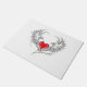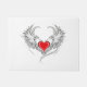 Artistically painted red heart with angel wings grey, decorated with black smooth contour.