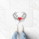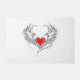 Artistically painted red heart with angel wings grey, decorated with black smooth contour.