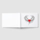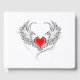 Artistically painted red heart with angel wings grey, decorated with black smooth contour.