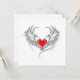 Artistically painted red heart with angel wings grey, decorated with black smooth contour.