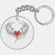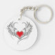 Artistically painted red heart with angel wings grey, decorated with black smooth contour.