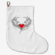 Artistically painted red heart with angel wings grey, decorated with black smooth contour.