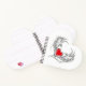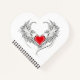 Artistically painted red heart with angel wings grey, decorated with black smooth contour.