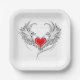 Artistically painted red heart with angel wings grey, decorated with black smooth contour.